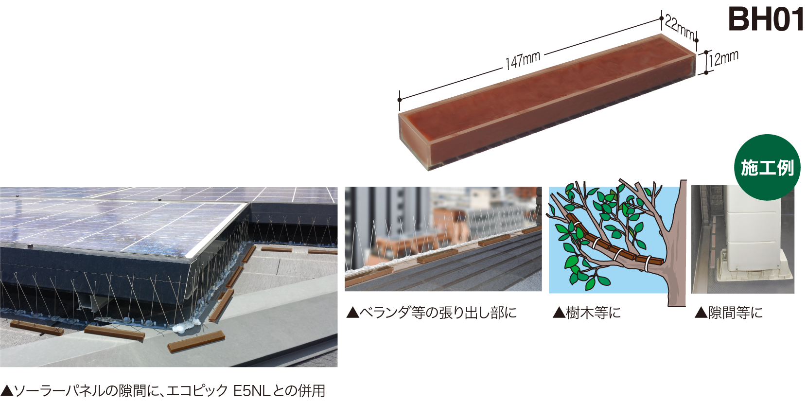 | BH01 | バードヘイト (色:茶色) | 120個/箱(約30m分) |