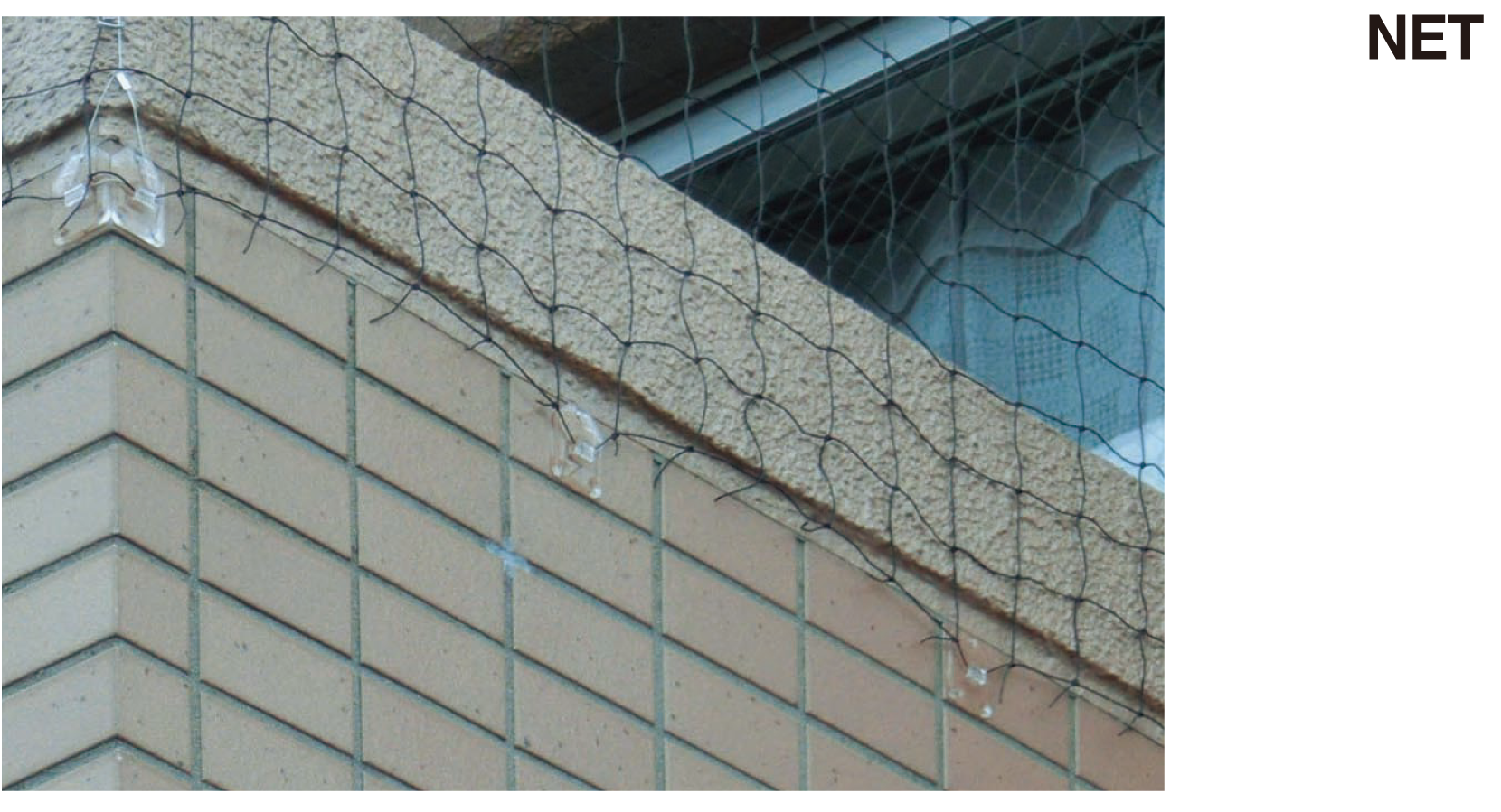 最もポピュラーな対策方法として知られているのがネットです。 この「バードネット」は目立たず、 建築物の美観を損ねないで鳥の物理的侵入を防ぐため、 単線ネットとは一線を画す、特別に開発された高品質ネットです。