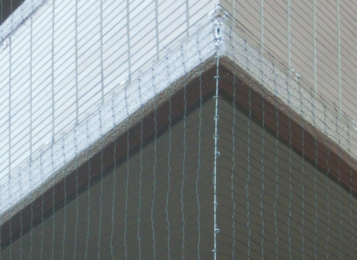 バードネットは、建築物の吹き抜けや軒などハトやスズメ、ムクドリなどが侵入しやすい場所に最適です。また、正確な取付後、大きなダメージを受けなければ、黒色ネットは10年以上も使用でき、 耐久性に優れ経済的です。